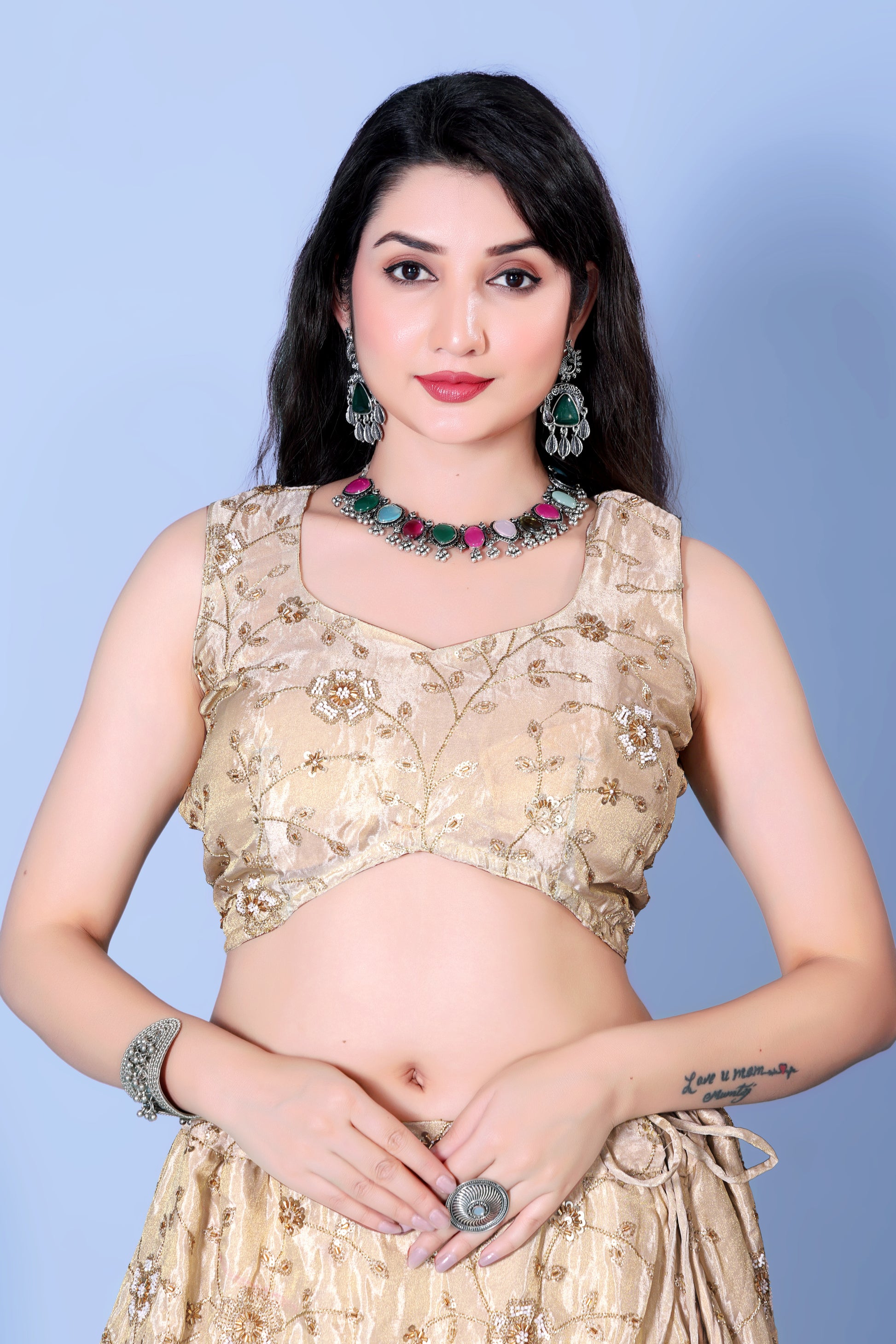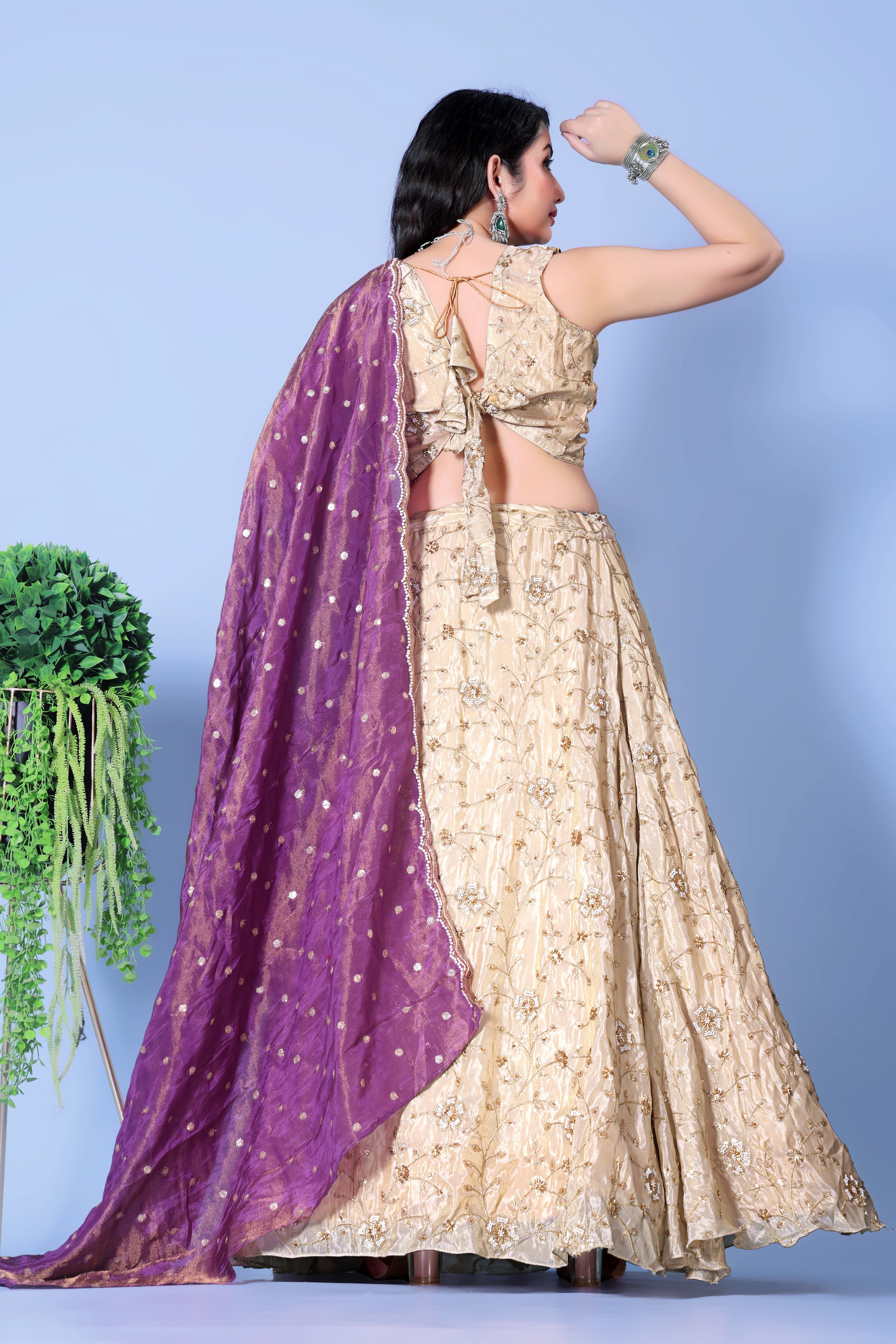 Celebrate your special day in style with this breathtaking lehenga that speaks volumes of timeless beauty and grace.